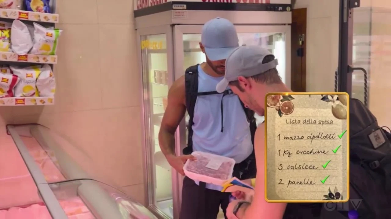 Married couple Jonathan and Ana Towns shopping for groceries in Naples, Italy on “The Amazing Race 37.”